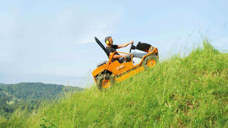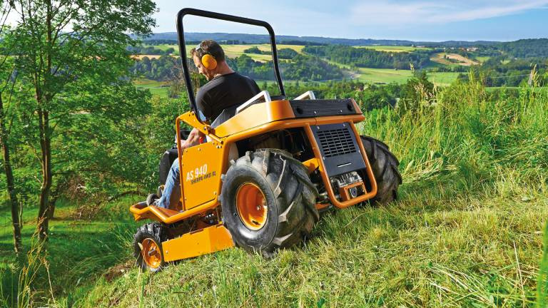 Der Allrad-Aufsitzmäher mit mehr Bodenfreiheit für den Einsatz im Steilhang und schwierigem Gelände Komfortables und sicheres Mähen am Hang mit dem AS 940 Sherpa 4WD XL. Eine Maximalleistung von 27 PS bei 724 ccm leistet der 2-Zylinder Professional Series 8 Motor von Briggs & Stratton. Der Motor ist voll hangtauglich durch Benzin-, Ölpumpe und Öldrucksensor. Am Hang besticht der Aufsitzmäher mit seinem permanenten Allradantrieb, seiner großen XL-Ackerstollenbereifung, einem sehr niedrigen Schwerpunkt und einem geringen Gesamtgewicht von nur 298 kg. Angetrieben wird der Aufsitzmäher über einen stufenlosen Hydrostat. Dieser ermöglicht eine stufenlose Geschwindigkeitseinstellung von 0 – 6,7 km/h vorwärts und 0 – 6,5 km/h rückwärts. Gesteuert wird der Hydrostat ausschließlich über den Fahrhebel, der vier Funktionen beinhaltet: die Vor- und Rückwärtsbewegung, die Bremse und die Parkbremse. Auf der rechten Seite befindet sich zusätzlich ein Notbremspedal wie beim PKW. Bei Schlupf auf der Hinterachse oder durchdrehenden Rädern kann jederzeit die Differenzialsperre der Hinterachse per Fußpedal zugeschaltet werden. Einzigartiges, surfendes Mulchmähdeck Der AS 940 Sherpa 4WD XL verfügt über ein surfendes Mähdeck mit Kreuzmessersystem und 90 cm Schnittbreite. Dadurch werden Flächenleistungen von bis zu 5.500 m² pro Stunde und Aufwuchshöhen von bis zu 1,5 m ermöglicht. Auch für Gestrüpp eignet sich der Aufsitzmäher. Das Kreuzmessersystem schneidet, zerfasert und zerkleinert zugleich. Dies geschieht über die pendelnd gelagerten Wendeklingen, welche am Messerbalken befestigt sind. Die Klingen schneiden das Schnittgut ab, das darüberliegende Mulchmesser zerkleinert und zerfasert es anschließend. Für ein bestmögliches Ergebnis sorgt das geschlossene Mähdeck, welches das Schnittgut nach hinten zwischen den Rädern auswirft. Dies sorgt für hohe Traktion am Hang und unter feuchten Bedingungen, da das gemähte Schnittgut nicht überfahren wird. Das surfende Mähdeck weicht beim Aufistzen auf den Boden oder auf Hindernisse nach oben aus. So wird beispielsweise beim Überfahren einer Kuppe vermieden, dass das Messer den Boden berührt. Dadurch werden Messer und Grasnarbe vor Schäden geschützt und der Verschleiß der Messer verringert. Die Einstellung der Schnitthöhen erfolgt fünfstufig, zentral und federunterstützt im Bereich von 80 – 135 mm. Hoher Komfort für lange Mäheinsätze Die aufrechte Sitzposition mit gestreckten Beinen ermöglicht ein komfortables Arbeiten für Bediener mit einer Körpergröße bis zu 1,90 m. Ein umlaufender Stahlrohrrahmen dient als Trägerbasis für alle Anbauelemente. Der Sitz lässt sich individuell für jeden Benutzer in Länge und Federungskomfort einstellen. Ein ausgeklügeltes Sitzfederpaket mit Gasdruckdämpfer, Federelementen und Elastomeren verhindert ein „Durchschlagen“ der Federung. Wesentlich für die Geländegängigkeit ist der tiefe Schwerpunkt und die tiefe Sitzposition des Fahrers in der Maschine. Zu den Seiten hin schützen Astabweiser den Benutzer vor Gestrüpp. Der klappbare Bügel bietet nach hinten zusätzlichen Schutz. Durch die getrennte Zu- und Abluftführung der Motor- und Hydrostatölkühlung wird vermieden, dass eine der beiden Komponenten die warme Abluft der anderen ansaugt und zum Kühlen nutzt. Durch dieses getrennte System wird eine Überhitzung sicher vermieden. Der AS 940 Sherpa 4WD XL ist für den professionellen Dauereinsatz geeignet. Produktvorteile Allrad-Antrieb (AS 940) Der permanente Allrad-Antrieb sorgt bergauf für bessere Traktion und bergab für eine stärkere, sichere Bremswirkung. Surfendes Mulch-Mähdeck Geschlossenes Mähdeck mit AS Kreuzmesser-System. Das Hauptmesser schneidet, das Kreuzmesser zerkleinert das Schnittgut. Zum Schutz vor Beschädigungen weicht das surfende Mähdeck bei Geländeunebenheiten nach oben aus. Exzellenter Fahrkomfort durch ergonomische Sitzposition Der in der Länge verstellbare Fahrersitz mit innovativem Federungssystem sowie eine ergonomische Sitzposition ermöglichen auch großen Personen bequemes Arbeiten über einen längeren Zeitraum. Stabiler, umlaufender Rohrrahmen Hohe Stabilität und Verwindungssteifigkeit bei harter Belastung. Hohe Geländegängigkeit Ackerstollen-Bereifung, zuschaltbare Differenzialsperre und ein hangtauglicher Motor sorgen für kräftige Traktion in schwierigem Gelände. Stufenloser Hydrostatantrieb (Aufsitzmäher) Optimale und leichte Anspassung der Geschwindigkeit an jeden Einsatz mit integrierter, mechanischer Parkbremse im Fahrhebel. Stabiler, klappbarer Bügel Mehr Sicherheit für den Fahrer im Grenzbereich der Maschine. Technische Daten Schnittbreite: 90 cm Motorhersteller: B&S Motorbezeichnung: Professional Series 8 4T Motor:2-Zyl. Hubraum: 724 cm³ Maximalleistung: 20,1/27,0 kW/PS Nennleistung: 16,5/22,4 kW/PS Nenndrehzahl: 3300 U/min. Antrieb: 4WD permanent Antrieb: Stufenloser Hydrostat Max. Geschwindigkeit: 6,7 km/h Differentialsperre: ja Automatische Parkbremse: ja Kreuzmesser: ja Heckauswurf: ja Geschlossenes Mähdeck: ja Surfendes Mähdeck: ja Schnitthöhe: 80 - 135 mm Tankinhalt: 15 l Sitzfederpaket: serienmäßig Abmaße LxBxH: 191x106x156 cm Gewicht: 298 kg