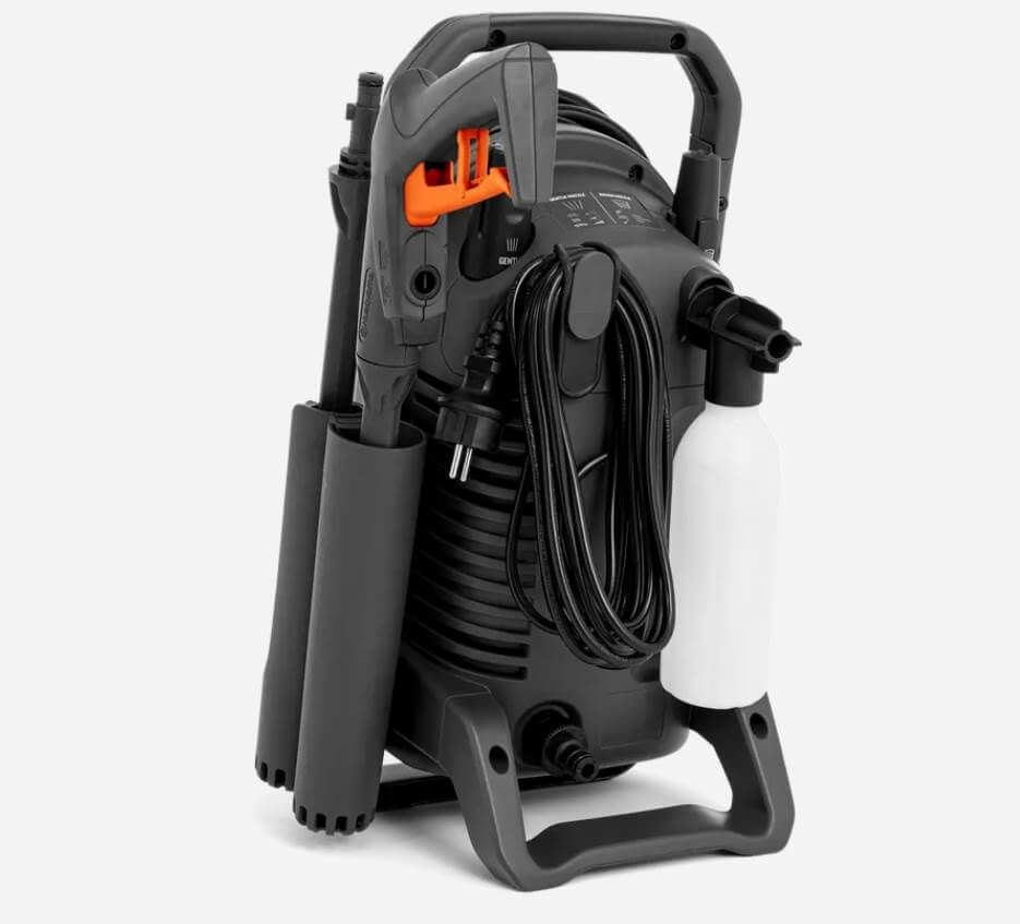 Produkthighlights im Überblick: Reinigungsmittelsprüher: Transparenter Schaumsprüher für eine einfache Kontrolle des Reinigungsmittelstands. Ergonomischer Tragegriff: Robuster und komfortabler Griff für mühelosen Transport. UltraFlex Hochdruckschlauch: Besonders flexibel und leicht aufrollbar für eine bequeme Handhabung. Intuitive Druckregulierung: Einfacher Zugang zur Düse und Druckeinstellung für optimale Reinigungsleistung. Praktische Aufbewahrung: Integrierte Fächer für Pistole, Sprühlanze und Zubehör direkt am Gerät. Robuste Metallpumpe: Langlebig und widerstandsfähig für eine lange Lebensdauer. Schlauchfach: Bequeme Aufbewahrung für eine schnelle Einsatzbereitschaft. Variable Flachstrahldüse: Vielseitig einsetzbar für unterschiedliche Reinigungsaufgaben mit perfekten Ergebnissen. Doppelte Drehgelenke & Schnellkupplungssystem: Maximale Effizienz und Komfort bei der Handhabung von Zubehör und Düsen. Rotierende Düse: Hohe Reinigungsleistung zur Entfernung von hartnäckigem Schmutz. Kompakte und leichte Bauweise: Einfache Lagerung und müheloser Transport. Husqvarna Kompakt-Hochdruckreiniger – Benutzerfreundlich, leistungsstark und platzsparend Der kompakte und leicht zu bedienende Hochdruckreiniger von Husqvarna ist die ideale Lösung für eine mühelose und effiziente Reinigung. Dank seines ultraflexiblen Hochdruckschlauchs, der intuitiven Bedienung und der stabilen Bauweise lässt sich das Gerät einfach transportieren und lagern. Schnellkupplungen, vielseitiges Zubehör und eine robuste Metallpumpe sorgen für eine langlebige und zuverlässige Reinigungsleistung bei verschiedenen Anwendungen.