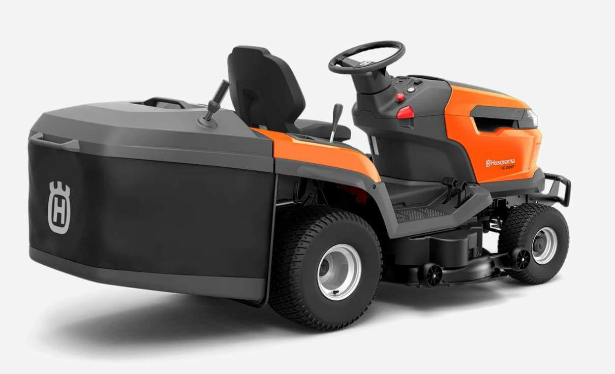 Produkthighlights im Überblick: Entleerungshilfe für Grasfangkorb: Ermöglicht müheloses Entleeren mit reduziertem Kraftaufwand dank Entriegelungshebel. Tempomat-Funktion: Konstant einstellbare Geschwindigkeit für mehr Komfort auf großen Flächen. Griffiges Lenkrad: Bietet eine angenehme Handhabung und bessere Kontrolle. Einfache Sitzeinstellung: Werkzeuglose Anpassung der Sitzposition für optimalen Komfort. Ergonomische Bedienelemente: Alle Funktionen sind intuitiv vom Fahrersitz aus erreichbar. LED-Scheinwerfer: Bessere Sichtbarkeit bei schlechten Lichtverhältnissen. Seitlicher Griff: Erleichtert das Ein- und Aussteigen sowie das Verschieben des Traktors. Doppelpedalantrieb: Separate Pedale für Vorwärts- und Rückwärtsfahrt für intuitive Steuerung. Federunterstützte Schnitthöhenverstellung: Leichtgängige Einstellung der Schnitthöhe für eine perfekte Rasenpflege. Elektrische Messeraktivierung: Bequeme Steuerung der Messer direkt vom Sitz aus. Langlebige Vorderachsen: Gusseiserne Vorderachse für hohe Stabilität und Haltbarkeit. Verstärktes Mähdeck: Pulverbeschichtetes Schneidwerk für erhöhte Widerstandsfähigkeit. Stoßstange: Schutz für die Vorderseite des Traktors gegen Stöße und Hindernisse. Rückwärtsmähen mit Starterschlüssel: Sicheres Mähen im Rückwärtsgang mit aktivierter ROS-Funktion. Einfaches Tanken: Externer Tankverschluss für schnelles Nachfüllen ohne Öffnen der Motorhaube. Zündschloss mit Starterschlüssel: Einfaches Starten ohne Choke – Schlüssel drehen und losfahren. Husqvarna TC 220T – Leistungsstarker Gartentraktor mit Entleerungshilfe und Tempomat Mit dem Husqvarna TC 220T Gartentraktor erzielen Sie mühelos einen gepflegten und perfekt geschnittenen Rasen. Dieser Traktor kombiniert eine komfortable Fahrt mit effizientem Mähen und ist ideal für größere Flächen. Die leicht erreichbaren Bedienelemente, ein ergonomisch verstellbarer Sitz sowie ein Seitengriff sorgen für hohen Komfort und Benutzerfreundlichkeit. Der integrierte Tempomat ermöglicht eine entspannte Bedienung auf weitläufigen Flächen, während der große Grasfangkorb für längere Mähintervalle sorgt. Die Entleerung erfolgt mühelos per Entriegelungshebel. Das 108 cm breite Mähdeck liefert eine hervorragende Schnittleistung, und die federunterstützte Schnitthöheneinstellung reduziert den Kraftaufwand für den Bediener. Technische Details Mähdeck TC220T TRAKTOR EU Art-Nr.: 970 72 78‑01 Arbeitsbreite 108 cm Schnitthöhe, max 105 mm Schnitthöhe, min 25 mm Stützrolle Nein Stützräder 4 Antriebssystem Antrieb Dual pedal-operation Geschwindigkeit, max 10 km/h Rückwärtsgeschwindigkeit, min-max max 6 km/h Motor Hubraum 708 cm³ Motorhersteller Husqvarna Motor HV 708AE Nettoleistung bei U/min Energy1 14,4 kW Nettoleistung bei U/min 2.800 U/min Zylinder 2 Kraftstoffsorte Kraftstoff Ölfilter Ja Ausrüstung Sitz Material PU Frontschutz Bürstenschutz Betriebsstundenzähler Digital Sitz Rückenlehnenhöhe Mittel Lenkrad Ergonomic - soft grip Grasfangbox Enthalten Getriebe Getriebeart Hydrostatisch Getriebehersteller Tuff Torq Geräuschemissionen Schallleistungspegel, LWA 100 dB(A) Schalldruckpegel am Ohr der Bedienperson 84 dB(A) Emissionen Abgasemissionen (CO2 EU V)2 806 g/kWh
