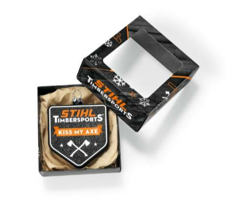 Weihnachtsbaumkugel KISS MY AXEFür wahre Super-Fans: Die limitierte Weihnachtsbaumkugel von TIMBERSPORTS® im exklusiven „Kiss My Axe“-Design. Mit ihrem schwarzen Finish und dem markanten Logo zieht diese Kugel alle Blicke auf sich und setzt ein echtes Statement. Perfekt als einzelner Hingucker oder in Kombination mit anderen STIHL Weihnachtskugeln.