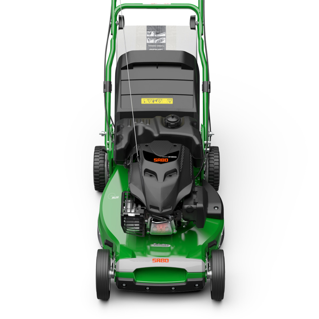 Profi Benzin-Rasenmäher mit 54 cm Schnittbreite und robustem Aluminium-Gehäuse mit Stahleinlage. Optimale Fangleistung dank patentiertem TurboStar™-System, mit Anti-Vibrations-System und variablem Antrieb für ermüdungsfreies Arbeiten auch an Hanglagen, der große 6-Liter Tank ist optimal für lange Arbeitseinsätze geeignet, die praktische Messerbremse stoppt das Messer während der Motor weiterläuft – Für große Flächen mit professionellem Anspruch. Geeignet für Flächen bis 4000m² Variabler Hinterradantrieb Verfügt über Anti-Vibrationssystem SABO Turbostar-System Gehäusematerial: Aluminium mit Stahleinlage Startsystem: Seilzug Verfügt über Messerstopp Schnitthöheneinstellung Einzelrad 8 Stufen (1,5-9,5 cm) Extreme Grasverhältnisse Ja SABO TurboStar ™-System Ja Fangsack Volumen in Liter 75 TurboStar™-Signal Füllstandsanzeige Ja Führungsholm höhenverstellbar 2-fach AVS Ja Messerbremse Ja Zuschaltbarer- Hinterradantrieb variabel 2,7-4,8 km/h Radlagerung vorne/hinten Kugellager/ Bronzegleitlager Gewicht 62 kg Tank 6,0 l Gehäusematerial Aluminium mit Stahleinlage Garantierter Schallleistungspegel LwA [dB(A)], gemessen nach 2000/14/EC 98 dB(A) Emissions-Schalldruckpegel am Bedienerplatz LpA [dB(A)], gemessen nach EN ISO5395-A4 / Messunsicherheiten nach ISO4871 84 dB(A) / 3,0 Schwingungen am Führungsholm ahw[m/s²], gemessen nach EN ISO5395-A4/Messunsicherheiten nach EN12096 2,5 m/s² / 1,3