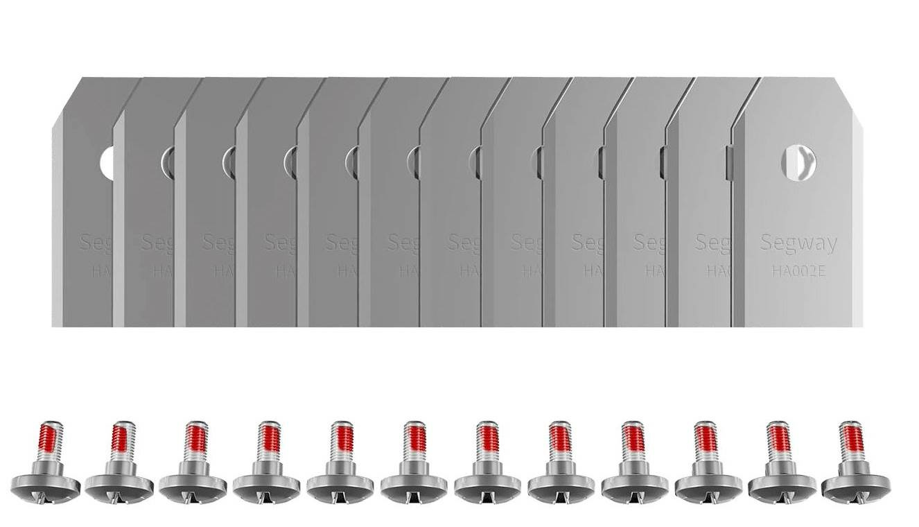 Segway Long-Life Ersatzmesserklingen – 12-teiliges Set Die Segway Long-Life Ersatzmesserklingen sind aus hochwertigem Hochgeschwindigkeits-Stahl gefertigt. Sie kombinieren einen weicheren Kern für Flexibilität mit gehärteten Kanten für maximale Schärfe und Langlebigkeit. Dieses Design sorgt für exzellente Schneideigenschaften und eine verlängerte Standzeit der Klingen. Die Sicherheitsklingen entsprechen den geltenden Normen und sind kompatibel mit allen Segway Navimow Mähroboter-Modellen.