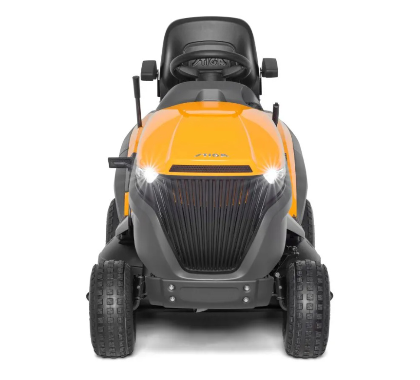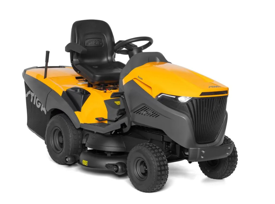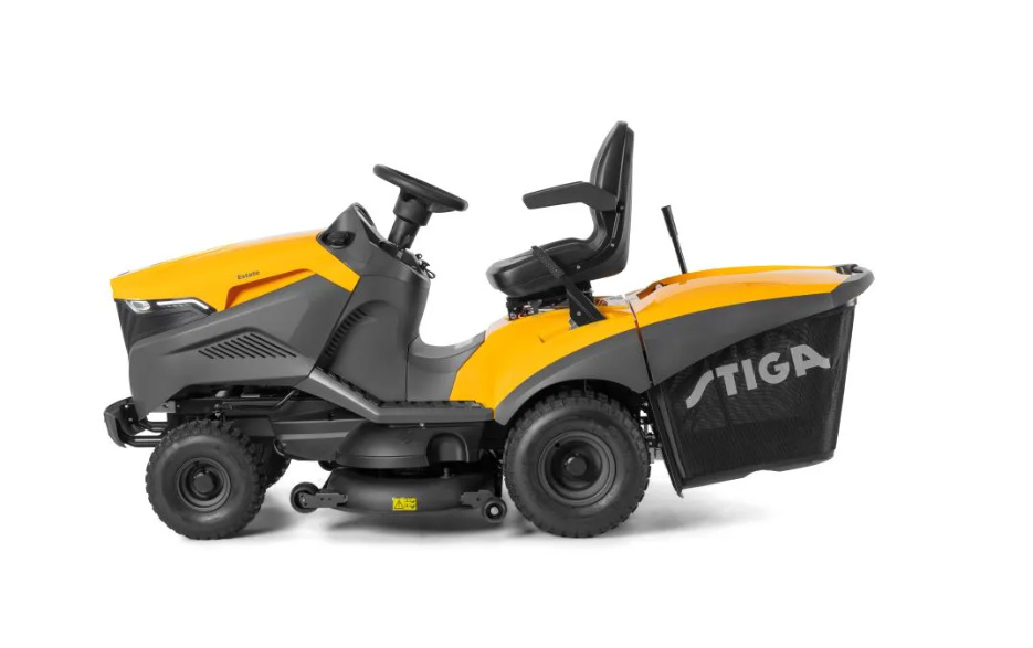 Estate 9102 W Rasentraktor mit 102 cm Schnittbreite, zwei zeitgesteuerten Messern und einem leistungsstarken Zweizylindermotor STIGA ST 650 635 cc. Ausgestattet mit einem geräumigen Auffangbehälter mit 320 Litern Fassungsvermögen. Der perfekte Partner für das Schneiden und Sammeln von Gras auf Rasenflächen bis zu 7000 m². Produktdetails und technische Daten Der STIGA Estate 9102 W Rasentraktor ist mit einem 635ccm STIGA ST 650 Zweizylindermotor ausgestattet und bietet eine exzellente Flächenleistung. Das großzügig bemessene 102cm Mähdeck und der beeindruckend geräumige 320 Liter fassende Grasfangbehälter sorgen dafür, dass Sie Ihre Arbeit schnell und effizient erledigen können. Er verfügt über ein 5,5-Zoll-Farbdisplay, das alle wichtigen Betriebsanzeigen übersichtlich und leicht ablesbar darstellt. Die STIGA Best Cutting Zone-Funktion zeigt dem Bediener dank der Grünlichtanzeige immer an, wann er die beste Schnittleistung erzielt, unabhängig von Gelände und Grasart. Außerdem verfügt er über ein hydrostatisches Fußpedalgetriebe, mit dem der Fahrer die Fahrgeschwindigkeit stufenlos steuern kann, ohne anhalten und manuell schalten zu müssen. Der Kombi 9102 W ist mit einem verstellbaren STIGA Comfort Plus-Sitz (mit Armlehnen), einem STIGA Premium-Softgrip-Lenkrad, einer gummibeschichteten Fußstütze und einer mühelosen Zapfwellenbetätigung per Knopfdruck ausgestattet. Die gusseiserne Vorderachse hält den Anforderungen eines häufigen, schweren Einsatzes auf unebenem Gelände mühelos stand, während die rutschfesten Räder des Mähdecks beim Wenden an Steigungen Rasenabdrücke verhindern. Der vielseitige Estate 9102 W ist nicht nur ein Auffanggerät, sondern kann auch mulchen oder das Schnittgut nach hinten auswerfen. Die siebenfache Schnitthöhenverstellung von 30 bis 90 mm erhöht die Einsatzflexibilität zusätzlich. Mulchkit, Batterieladegerät und Anhängerkupplung sind separat erhältlich.
